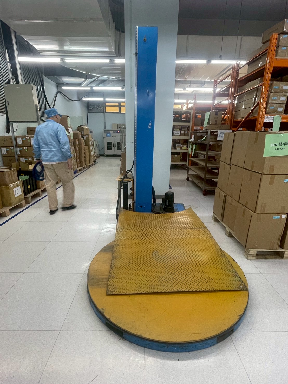 這款自動旋轉托盤磅秤是一種高效的物料搬運設備,專為倉庫和物流中心設計。其堅固的金屬結構和防滑表面確保了安全的操作,並能夠承載重物。設備的高度可調,適合不同的包裝需求,並且運行平穩,能夠提高工作效率。估計使用年限為5年。