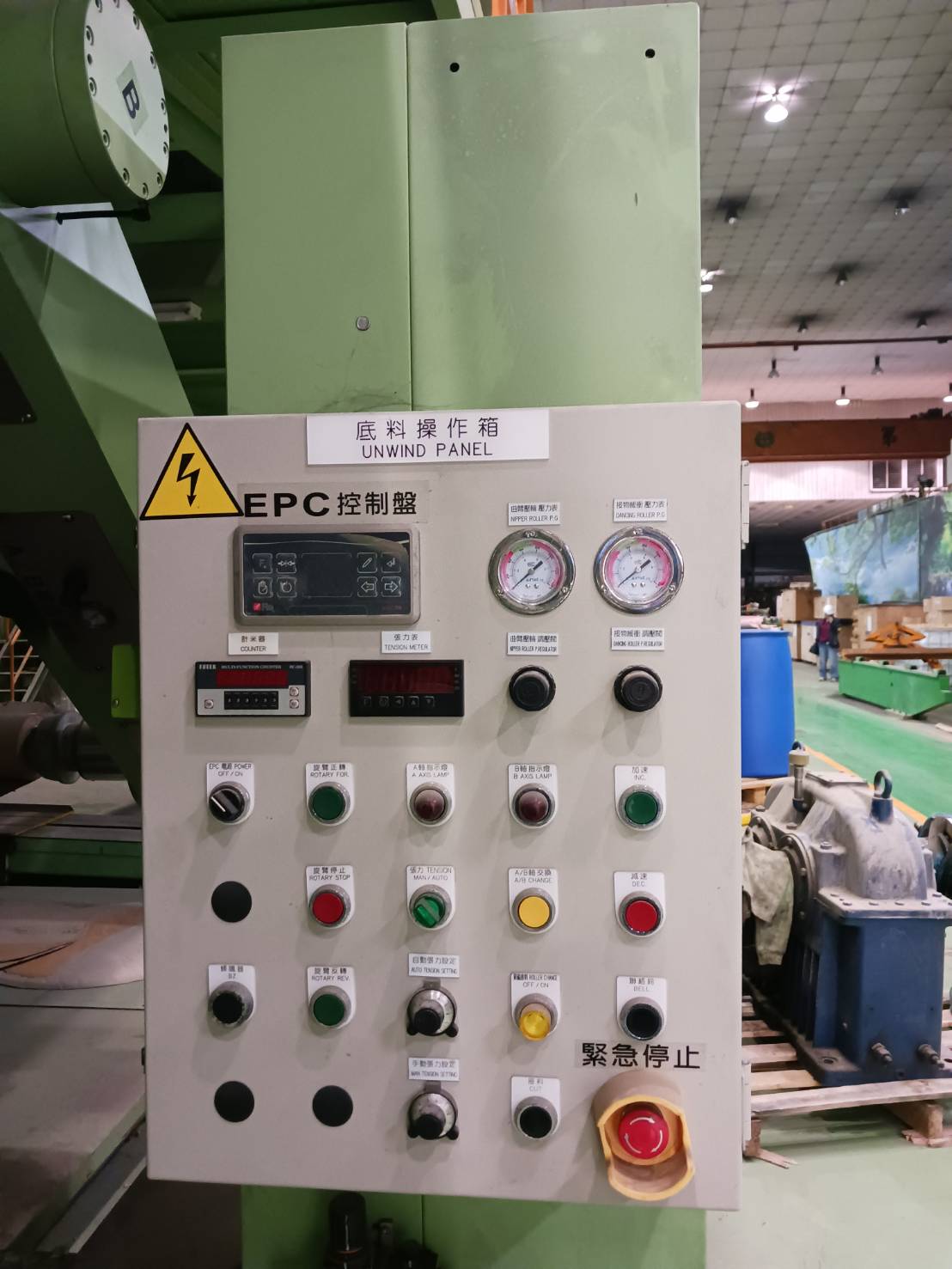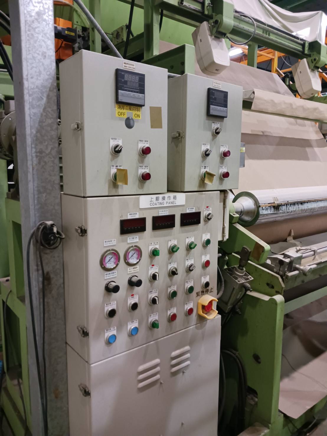 Entire high-capacity thermal transfer paper coating and converting line originally built around a YII-CHWAN 1650 mm thermal transfer coating machine with 36 m drying tunnel. Line includes supercalendering, precision sheeting, and automatic ream wrapping. All equipment is currently idle in Taiwan, dismantled-ready or in-place depending on component, and offered as one complete lot.