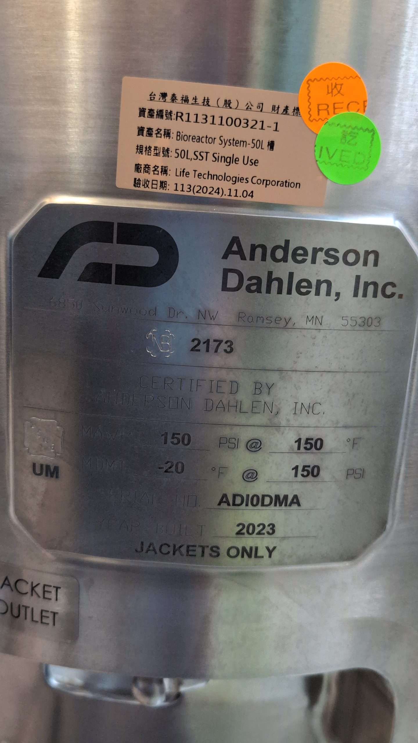 Lot sistem bioreaktor sekali pakai Thermo HyPerforma 50/250 L baru, termasuk tangki 50 L dan 250 L dengan pengontrol G3Lite, pengontrol suhu VD 2000, dan unit kontrol pusat NET.209454.