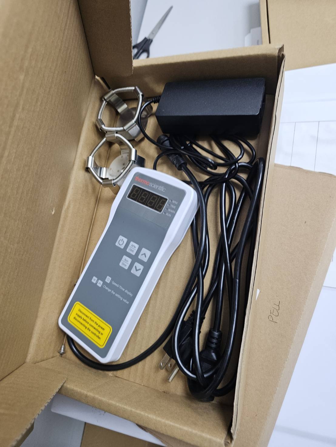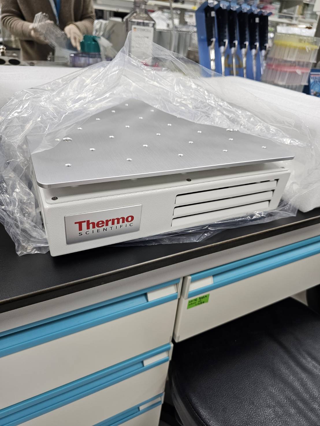 This Thermo Scientific equipment features a sleek, compact design, ideal for laboratory settings. It is constructed with high-quality materials, ensuring durability and reliability in various scientific applications. The equipment has been in use for approximately 3 years, showcasing minimal signs of wear and tear. Its expected disposal or selling price is estimated to be around 500 USD.